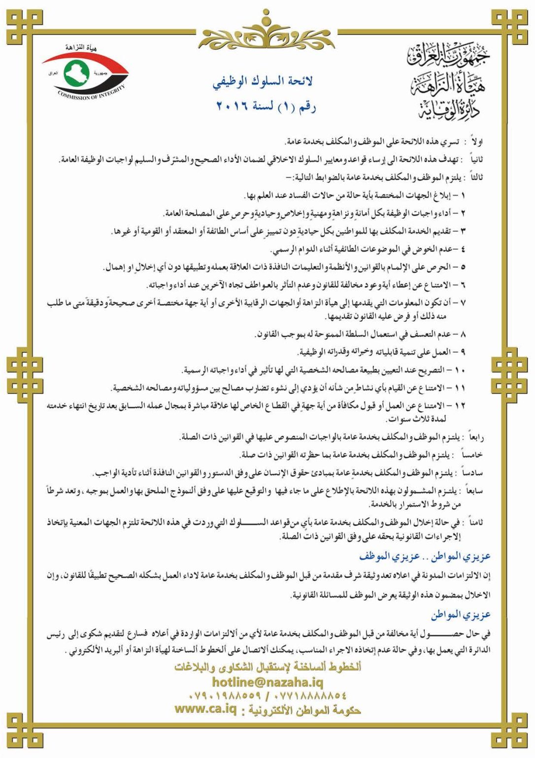 - لائحة السوك الوظيفي لسنة ٢٠١٦، لتحميل اللائحة اضغط هنا.
