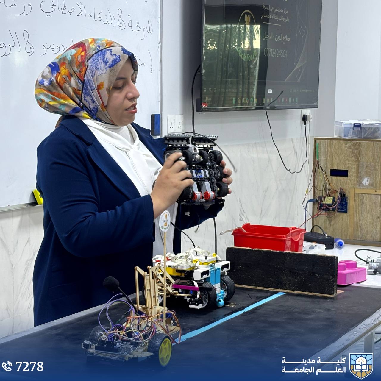برعاية وحضور السيد عميد كلية مدينة العلم الجامعة الاستاذ الدكتور فارس عبد الكريم والسيد معاون العميد للشؤون الادارية الدكتور غانم مقبول , اقامت شعبة التعليم المستمر وبالتعاون مع قسم تقنيات هندسة الحاسوب ومركز روك للبرمجة والذكاء الاصطناعي محاضرة بعنوان(استكشاف عالم الاردوينو والروبوتات)