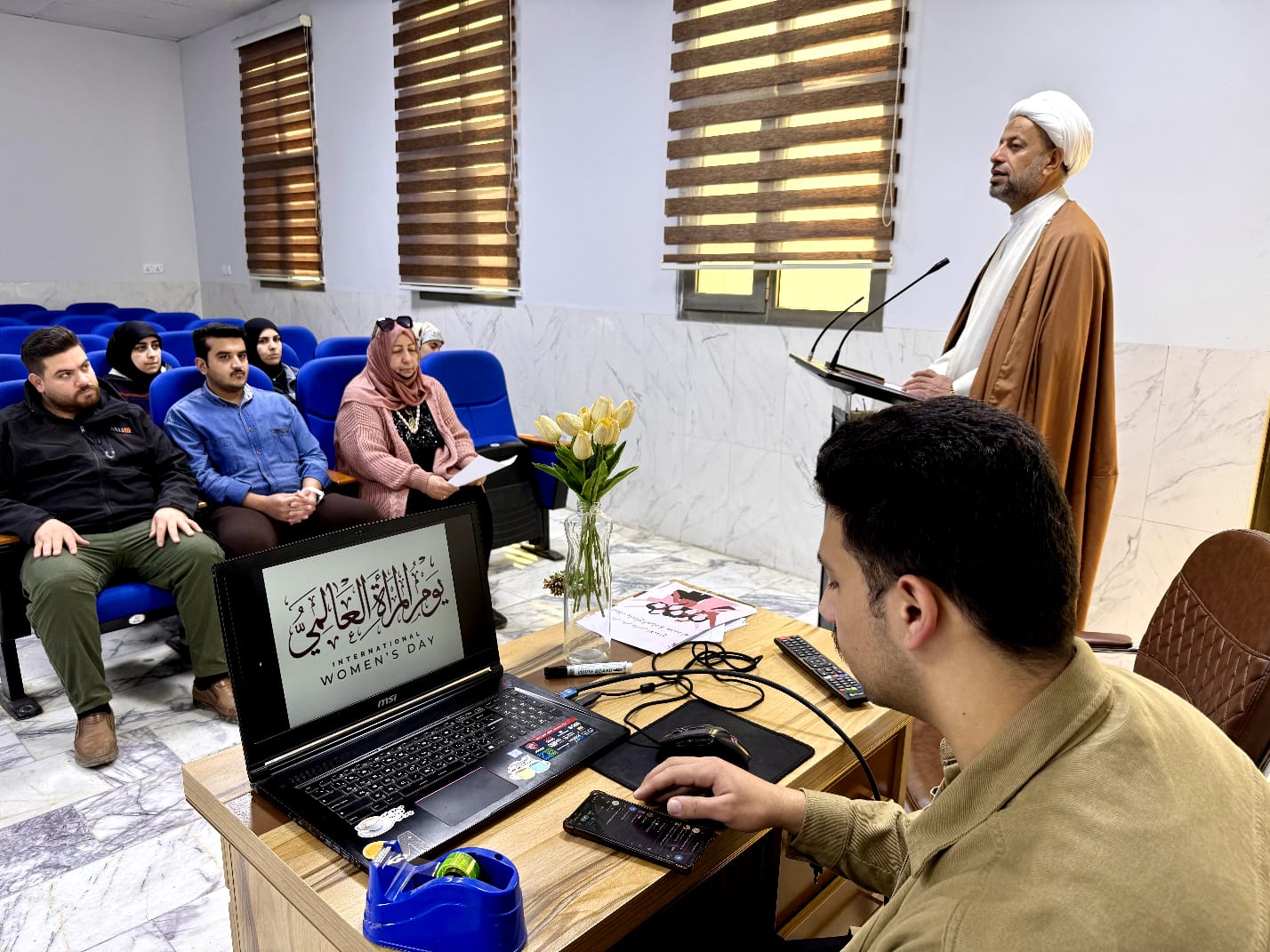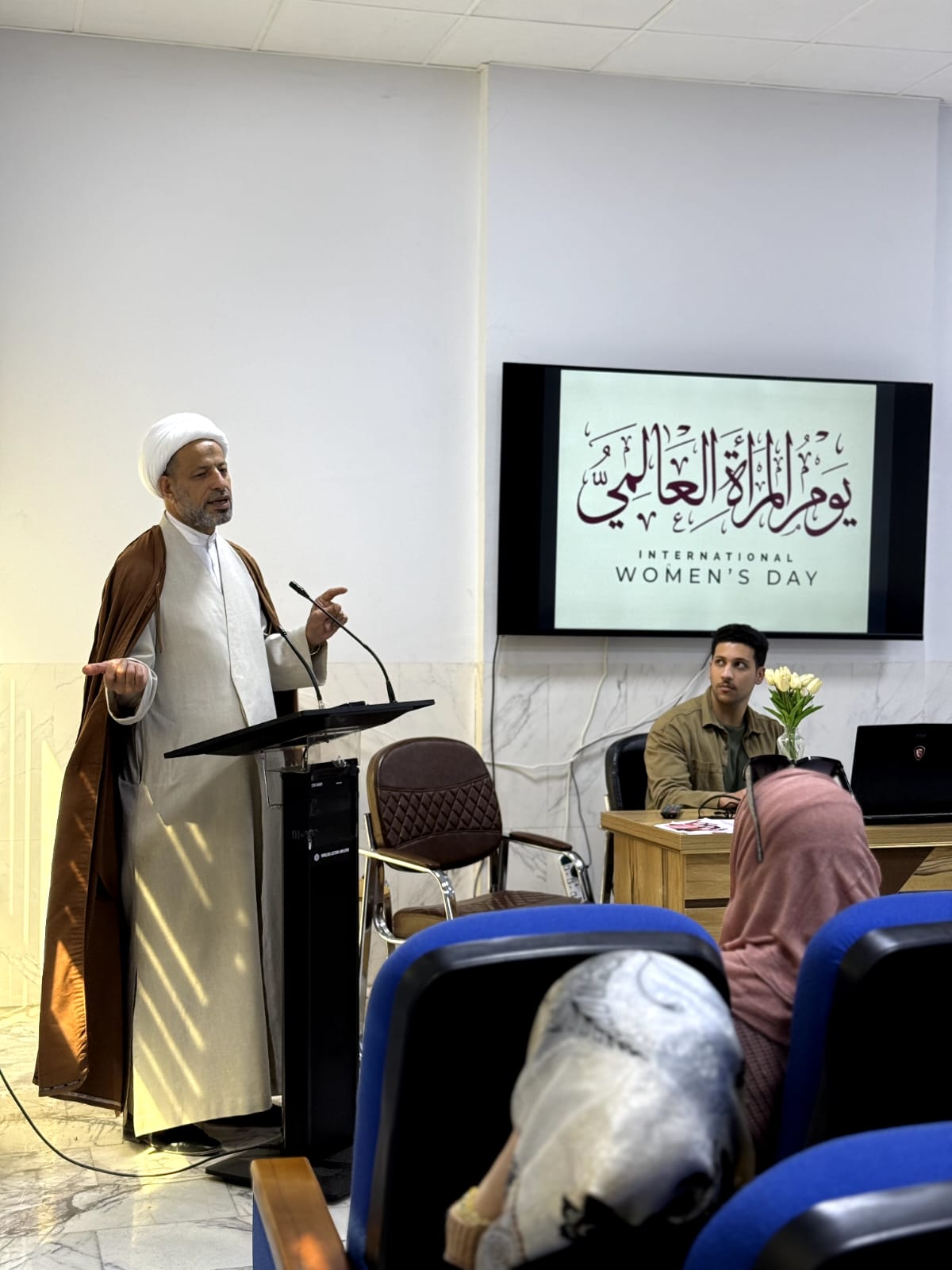 كما تضمنت الاحتفالية بهذه كلمة القاها الشيخ الدكتور علي الجبوري امين مجلس الكلية سلط فيها الضوء على دور المرأة في المجتمع وأهمية تمكينها وتعزيز مكانتها. وقد أشاد الشيخ الجبوري بإسهامات المرأة في مختلف المجالات، سواء على المستوى الأسري أو الاجتماعي أو الاقتصادي، مؤكدًا على ضرورة دعمها وتوفير الفرص المتكافئة لها لتحقيق طموحاتها.
