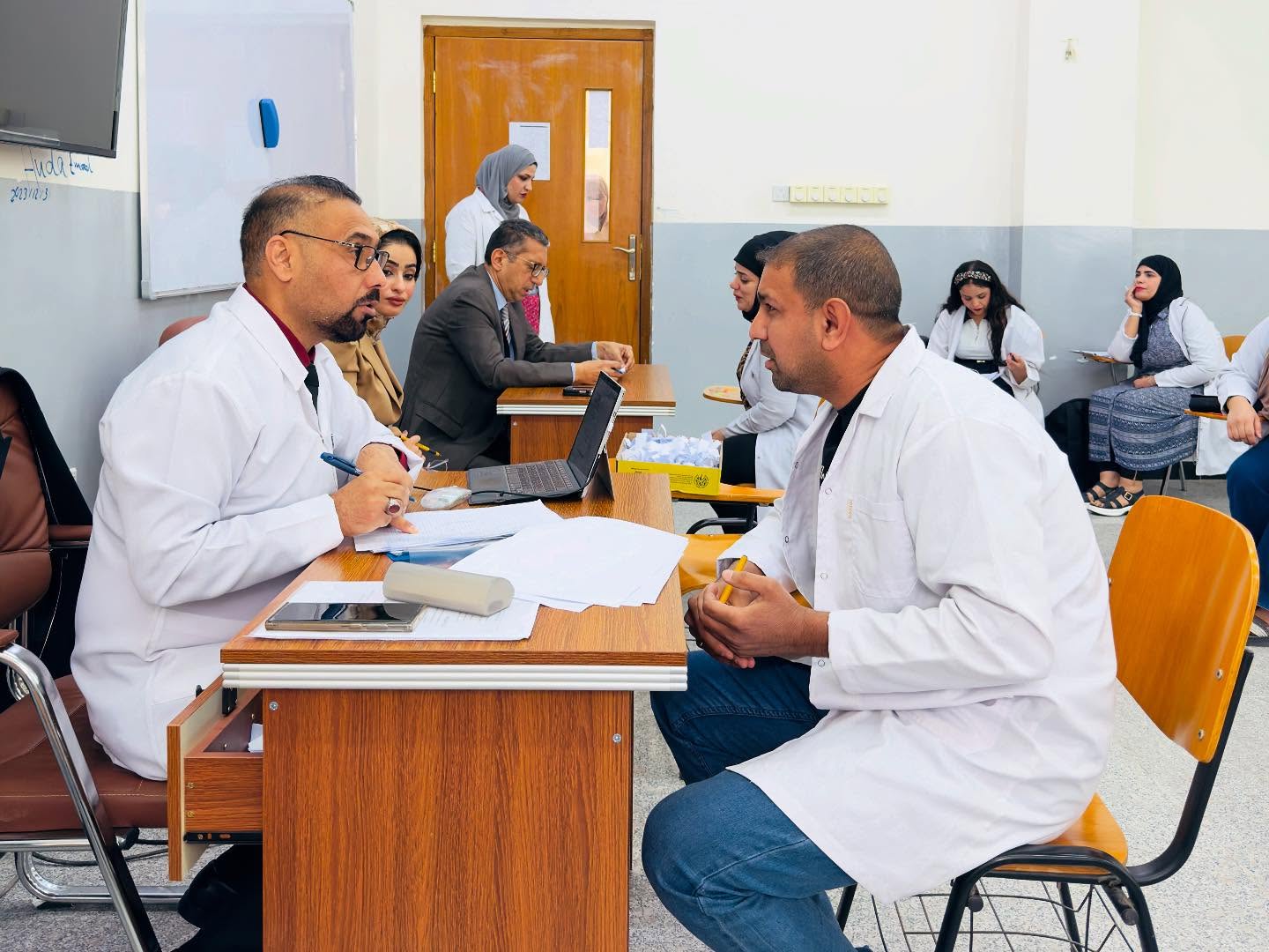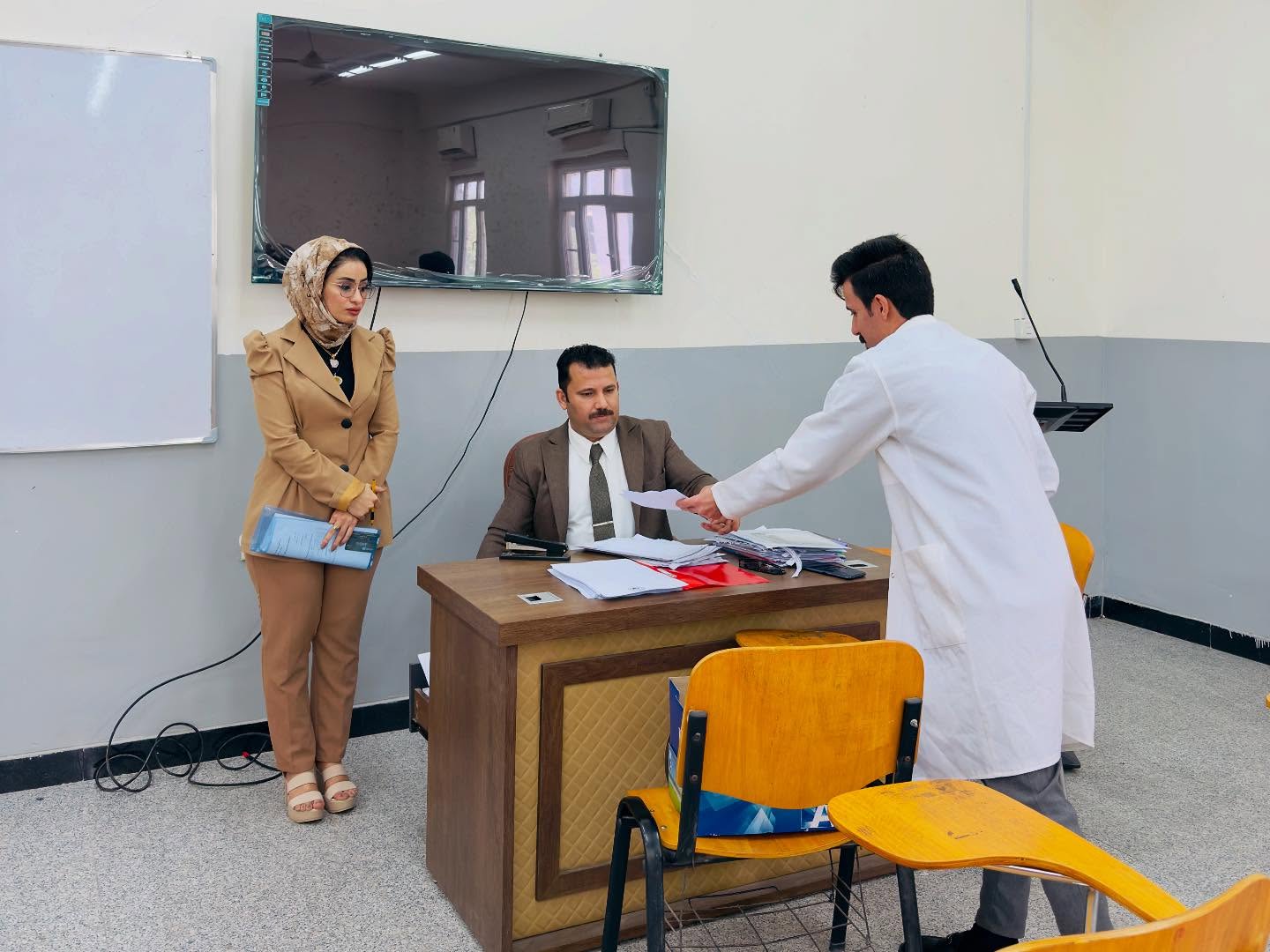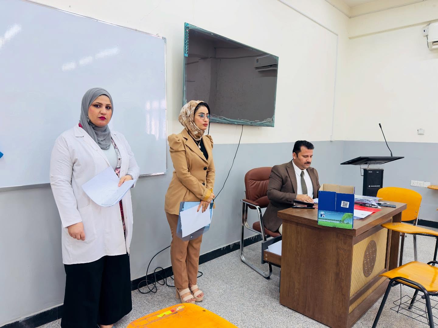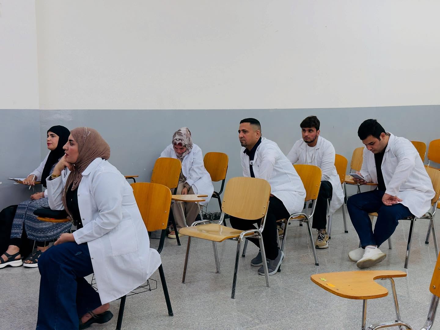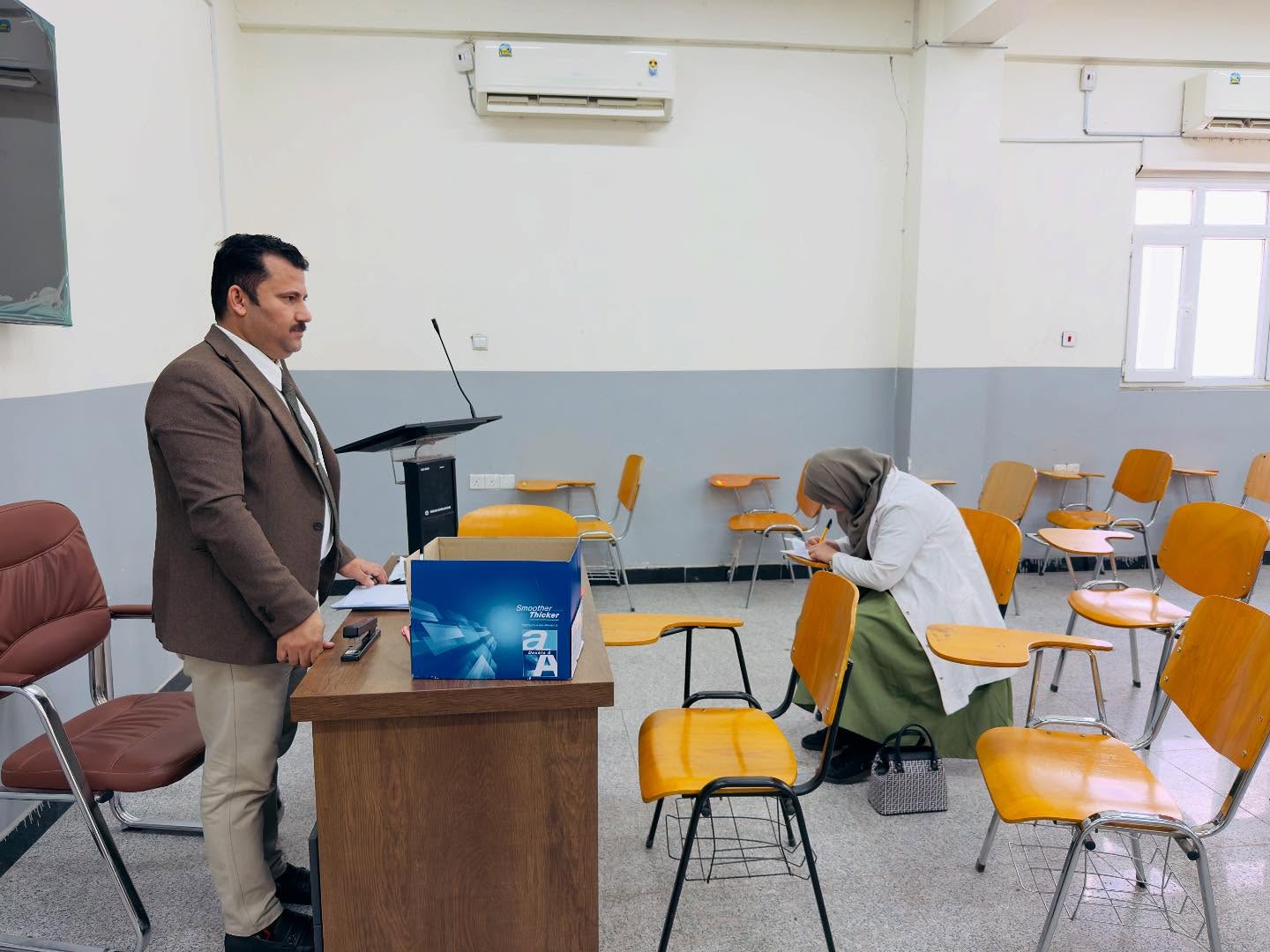 تم اليوم إجراء امتحان تقويمي عملي نهائي لطلبة المرحلة الرابعة في مادة صحة مجتمع حيث تضمن الامتحان تشكيل اكثر من لجنة اختبار ضم اساتذة القسم من اختصاص المادة وفي مقدمتهم الاستاذ الدكتور ثامر الحلفي معاون العميد للشوون العلمية