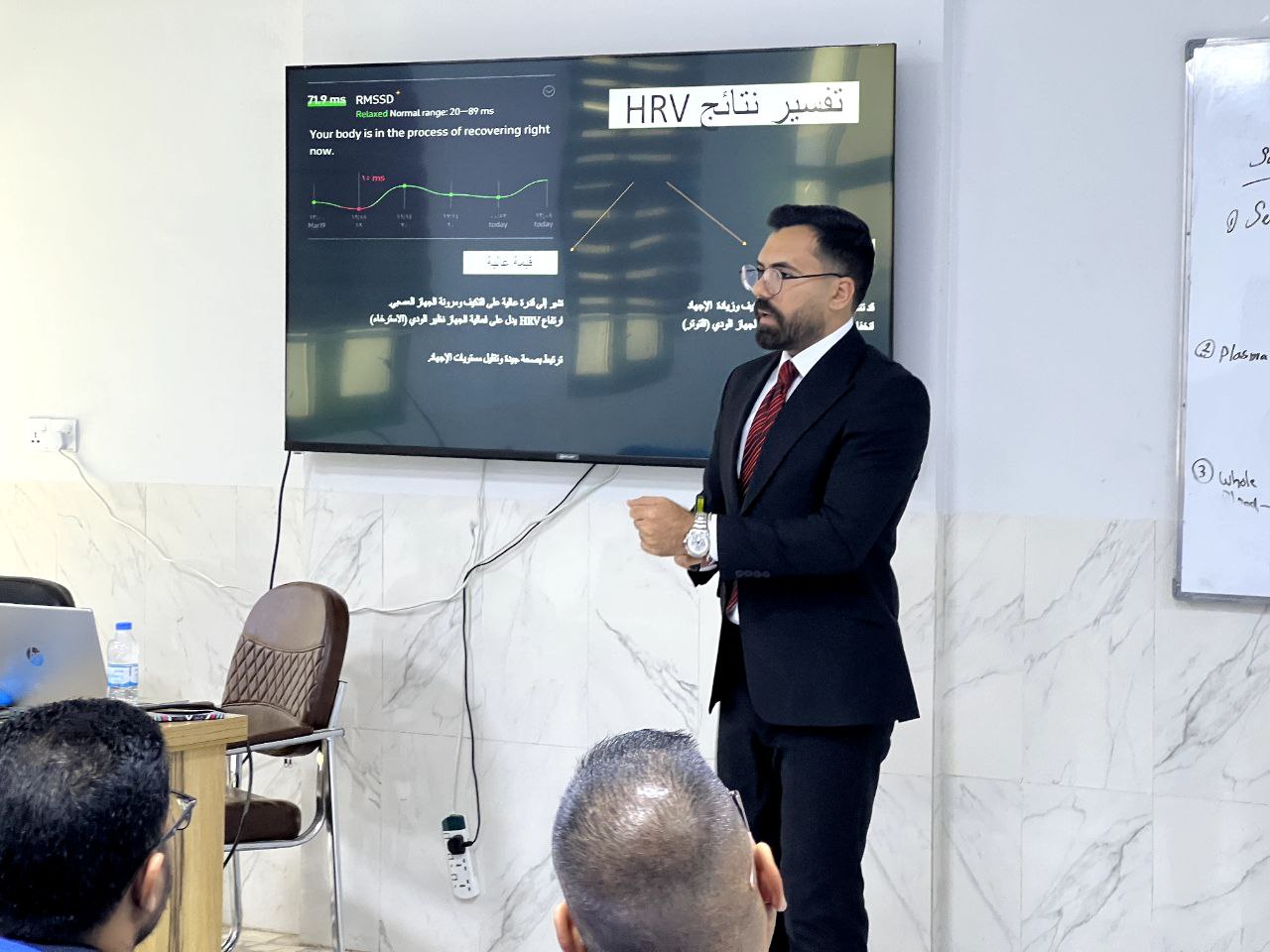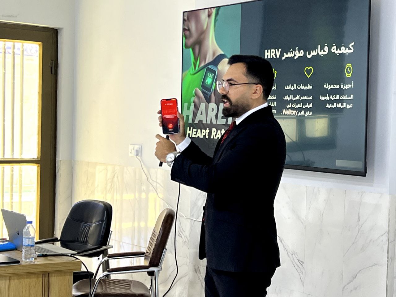 ألقى الأستاذ محمد عبدالله محمد التدريسي في قسم التربية البدنية و تناولت الندوة تباين نبضات القلب HRV كمؤشر حيوي رئيسي لصحة الجسم.