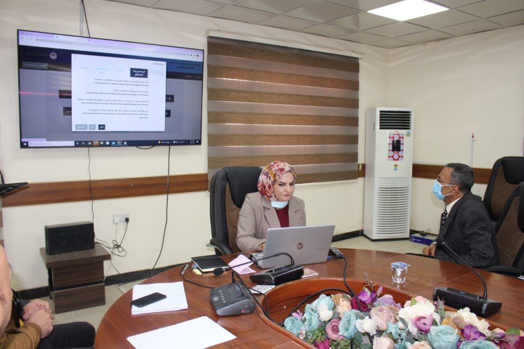 القتها الاستاذ المساعد الدكتور دنيا زكي رئيسة لجنة النضوج الرقمي وبحضور السيد عميد الكلية واعضاء اللجنة وتضمنت الورشة ابرز المحاور المتعلقة بعمل اللجنة واستعرضت استمارة النضوج الرقمي عبر البوابة الالكترونية التي خصصتها وزارة التعليم العالي والبحث العلمي عن طريق نظام قياس جاهزية المؤسسات التعليمية للتحول الرقمي