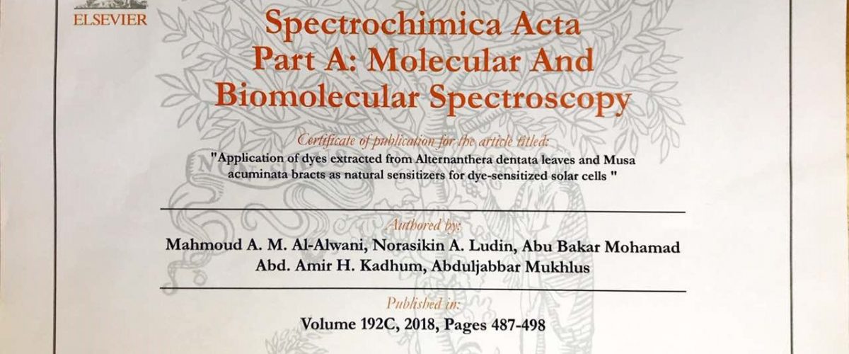 Spectrochmica Acta الامريكية في عددها 192C لسنة 2018